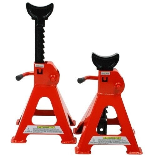 Assteunen set 2 delig, 3 TonSet bestaande uit twee roodgelaktetrapsgewijs verstelbare assteunen.Minimale hoogte: 295 mm.Maximale hoogte: 425 mm.