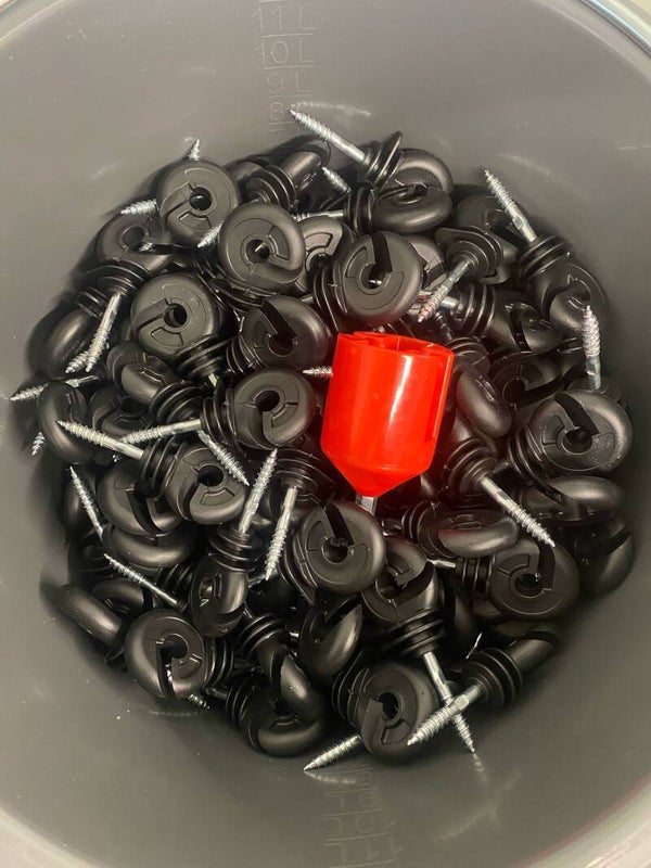 AKO ringisolator met doorlopende steun incl. inschroefbit/houder in een Robuuste stal-/bouwemmer met deksel