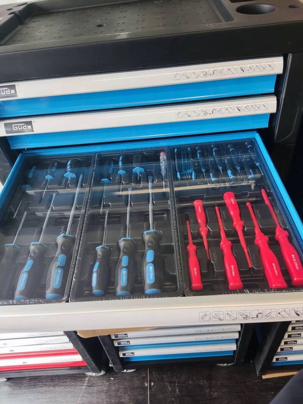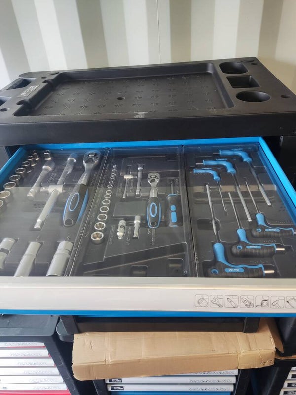 De wagen wordt geleverd met een 250-delige gereedschapsset van hoogwaardig chroom-vanadiumstaal, verdeeld over vier modules: