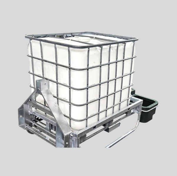 Chassis voor IBC watervat om in de liftlat van de tractor te hangen.